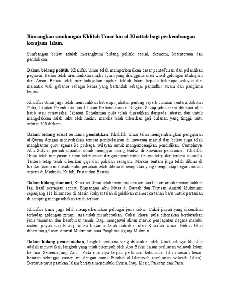 Bincangkan Sumbangan Khilifah Umar Bin Al Khattab Pdf